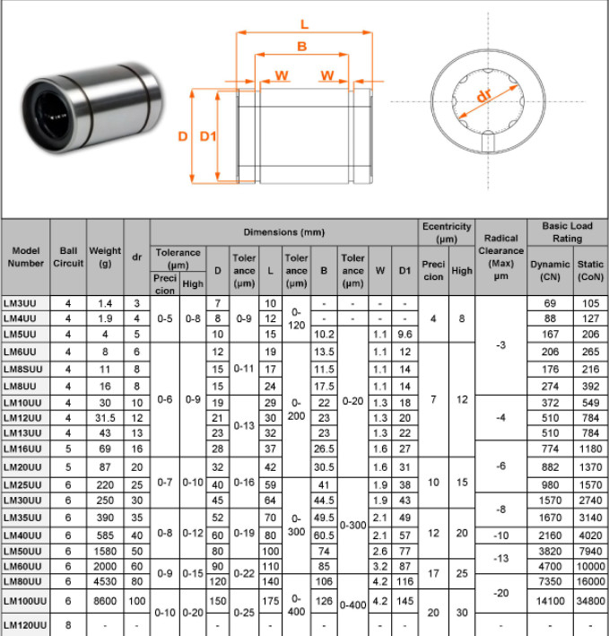 LinhKienJIG.com chuyên cung cấp các loại Vòng bi trượt LM với rất nhiều qui cách về kích thước, thông số kĩ thuật. Con trượt LM, bạc trược LM, bi trượt LM, bi trượt dẫn hướng LM4UU LM5UU LM6UU LM8UU LM10UU LM12UU LM16UU LM20UU LM6LUU LM8LUU LM10LUU LM12LUU LM16LUU LM20LUU